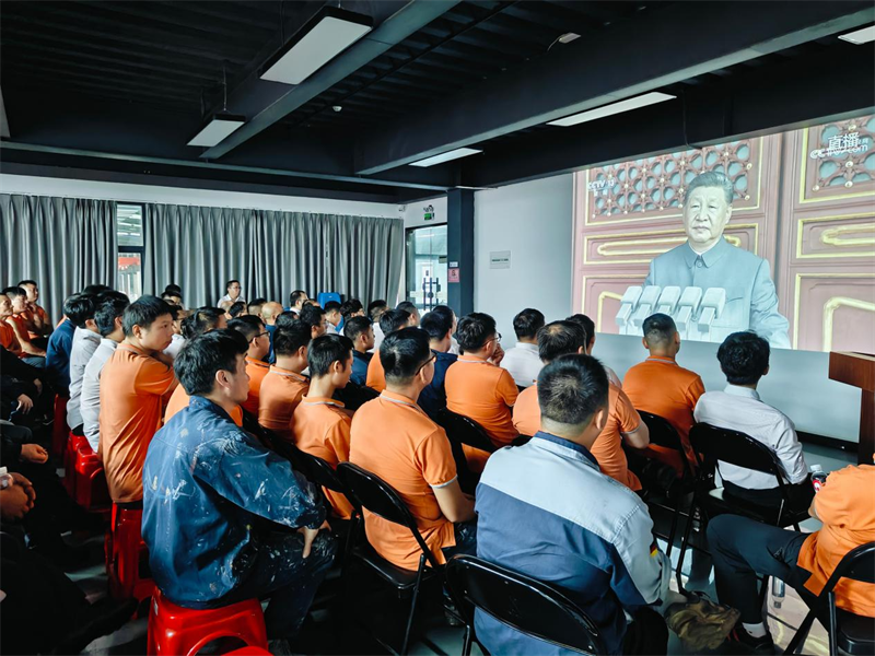當雄壯的國歌聲響起,鮮艷的五星紅旗冉冉升起,所有職工自覺起立,高唱國歌。受閱部隊步伐鏗鏘,現(xiàn)代化裝備列陣而來,大家情不自禁報以熱烈掌聲,民族自豪感油然而生。許多員工表示,閱兵儀式不僅展示了國家強大的國防實力,更激發(fā)了大家立足崗位、精益求精的奮斗熱情。
